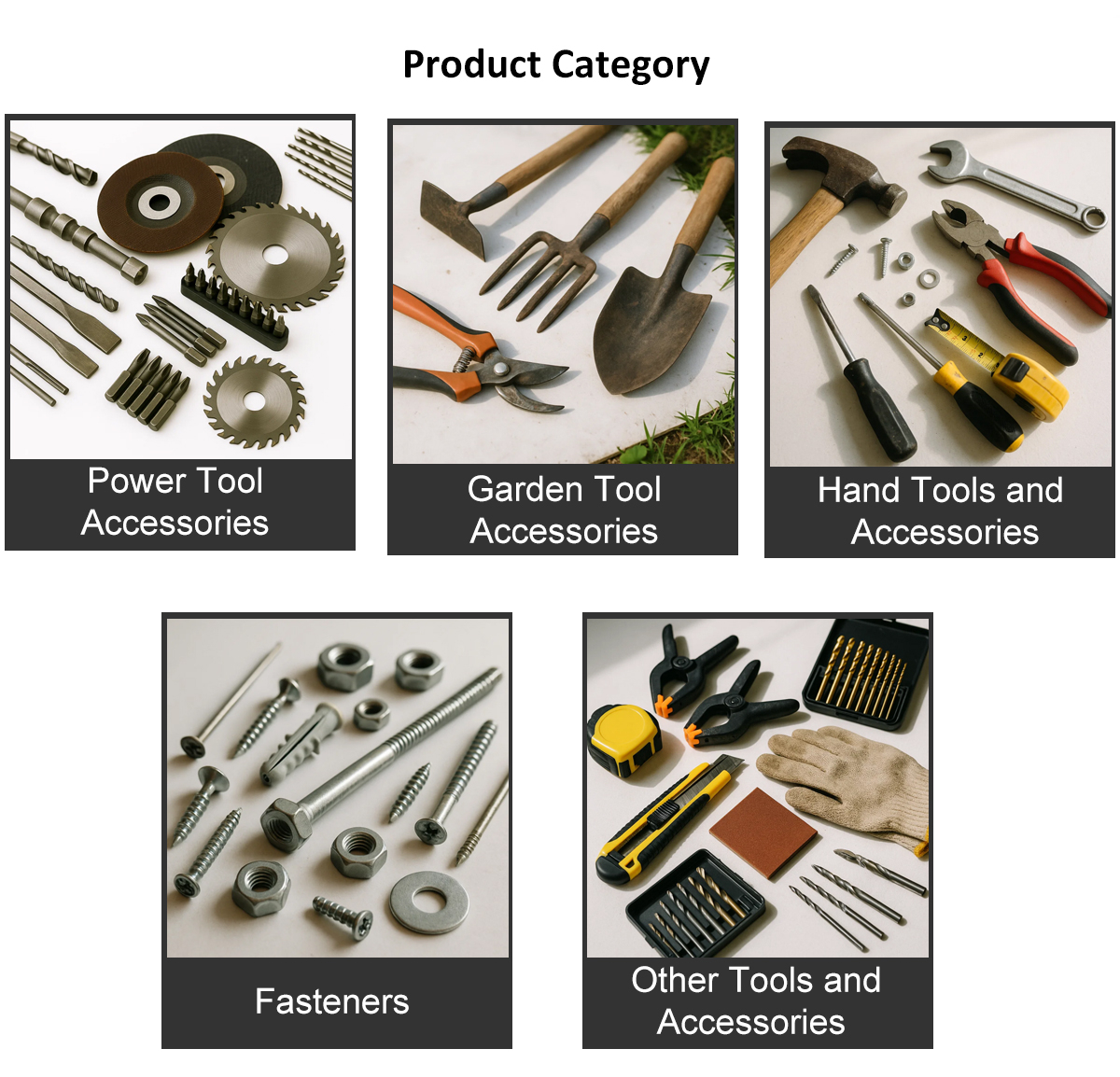 Productos principales:Sellado y sujetadores, Accesorios para herramientas de jardín, Herramientas manuales, Accesorios para herramientas eléctricas, Accesorios para herramientas